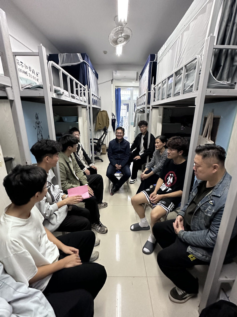 院领导走访考研宿舍,与同学们亲切交流,细致了解备考进展与实际困难,认真听取大家在复习资料获取、自习资源安排、考研目标选择等方面的意见与建议。学院党委书记赵志超对挂牌宿舍提出殷切希望:一要发挥示范引领作用,带动更多同学专注学业、积极备考;二要注重自我管理与互助服务,共同营造和谐有序、共进共赢的宿舍氛围。“考研宿舍”挂牌不仅是对学子拼搏精神的认可,更是学院全程关怀、精准帮扶的生动体现。同学们纷纷表示,将以此次挂牌为契机,珍惜资源、凝聚合力,在严谨推理与系统分析中锤炼专业本领,奋力书写无愧于青春的人生答卷。