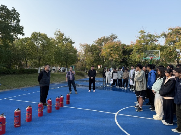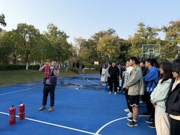 演练开始前,消防技术专家结合高校实际,系统讲解了日常生活中及实验室内常见的火灾隐患类型,重点介绍了干粉灭火器、二氧化碳灭火器等常用消防器材的适用场景、工作原理、操作步骤及日常维护规范。