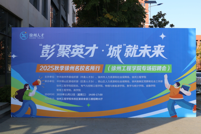 为深化校地合作、聚力引才留才,2025年11月12日,徐州工程学院联合徐州市委组织部(市委人才办)、市人力资源和社会保障局、铜山区委组织部、区人力资源和社会保障局及高新区党群工作部,共同举办“2025秋季徐州名校名所行”暨2026届毕业生留徐就业专场招聘会。六十余家区域重点企业进场揽才,为毕业生提供大量优质就业岗位。