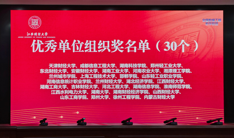 2025年12月7日,2025年(第二届)大学生数据要素素质大赛全国总决赛闭幕式、颁奖典礼暨2026年大赛启动仪式在江西财经大学圆满落幕。我校学生团队在此次大赛中取得佳绩,荣获最佳作品奖及全国一等奖2项。我校荣获“优秀单位组织奖”。