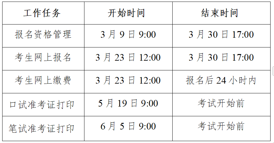 三、报名相关工作时间安排