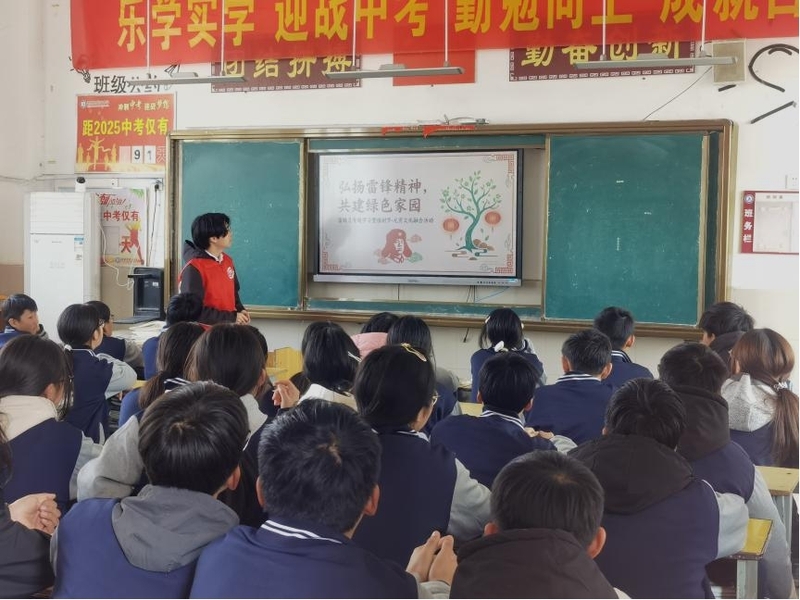 弘扬雷锋精神,播种绿色希望。雷锋月期间,学院创新采用“宣讲+实践”相结合的形式,深化雷锋精神内涵传播,组织志愿者走进邳州市岱山中学,面向初一学生开展主题公益宣讲与实践活动。活动现场,志愿者们通过生动讲述雷锋感人事迹、开展植树节环保实践等环节,将奉献友爱互助的雷锋精神与绿色发展理念深度融合,引导中学生在沉浸式实践中感悟雷锋精神的时代价值,增强生态环保意识,厚植传统文化底蕴。