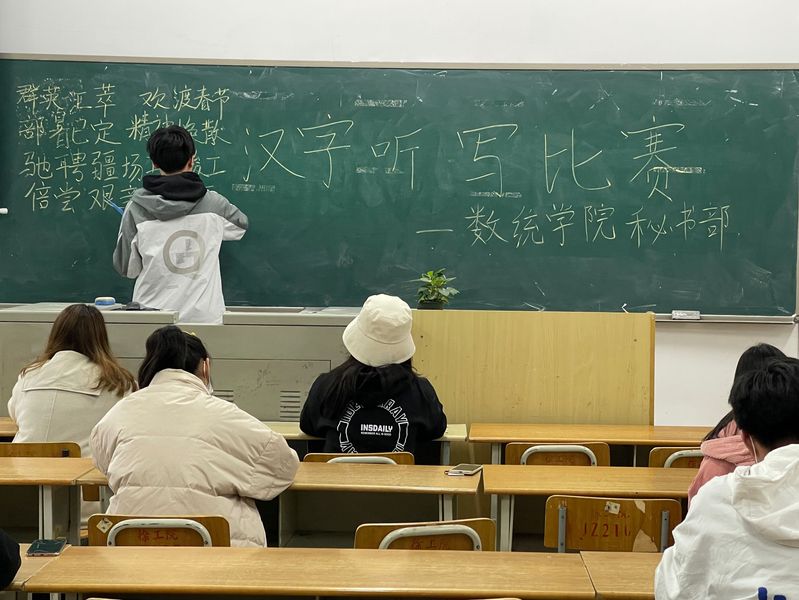 为了让学生走近并感受中国传承五千年汉字的迷人魅力,积极传承和弘扬中国优秀传统文化,丰富学生课余生活,数统学院11月7日在敬知楼208教室举办以“研诗风字韵,踵事增华章”为主题的“汉语文化听写竞赛”。